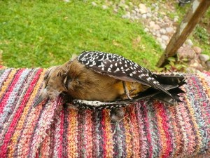 On a sadder note, another collision with our windows killed a beautiful female Hoffman’s woodpecker. I’d welcome any suggestions about how to stop these accidents. Do the falcon silhouettes really work?