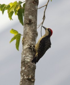 The Black-cheeked woodpecker appeared twice in December 2008; the visits were about a week apart and each time the favoured tree was what I’m told is Fruta de paloma, a tall tree on my top fence-line that is noteworthy for having attracted, in January 2009 but in numbers and with daily regularity, Long-tailed silky flycatchers and Mountain elaenias.  This tree is fruiting right now, so I’m hopeful that something may turn up in the coming days and weeks.  A single male Black-cheeked came first in the first week of December, and about a week later I noted a pair.