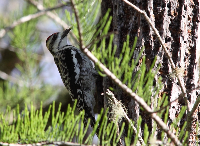 The Yellow-bellied sapsucker, the only Costa Rican migratory woodpecker, according to Stiles & Skutch, made my day on November 30th, 2008.  There were  two birds, actually, (at least two, say my field notes,) one an immature (possibly two), and the other with a red nape.  I stress the red nape because I didn’t see this bird’s crown colour, which presumably would also have been red, making this (according to Sibley) an adult male.  Sibley says that the Yellow-bellied male can ‘occasionally’ have a red nape.  Stiles & Skutch say that adult males are rarely seen in Costa Rica and make no mention of red napes on what is anyway, by all accounts, a very uncommon migrant and winter resident.