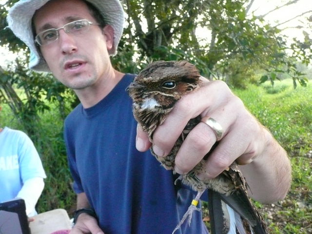 Here’s Fabrice untangling the pauraque for the second time. If he had known what was coming, he wouldn’t have been smiling.