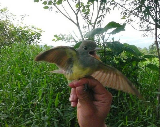 It was a hectic morning at cerca viva today. No time for breakfast, since so many birds fell into the nets. Today’s highlight was a Myiarchus flycatcher, but we also had a pretty Barn swallow (Hirundo rustica), netted here only very infrequently. Another Common pauraque (Nyctidromus albicollis), this time a female, was possibly the mate of the unfortunate male who was the star of an earlier post.