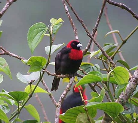 CATIE was helping in a 6-hour bird census specifically aimed at the Cerulean warbler (Dendroica cerulea) but, again, I coudn’t attend. This warbler is a species that I have never seen in my life. Instead, I spent more or less the same Sunday hours poking around the neighbourhood here. I didn’t find any warblers at all, nor vireos, but I got a good look at a Stripe-throated hermit and then was suprised to find the lone Crimson-collared tanager (Ramphocelus sanguinolentus) just a little way up the Cinchona road. This is perhaps only the second or third time that I’ve been able to see this supposedly common bird. The other sightings were at my feeder with not very good lighting conditions, and so I was stunned to see how beautiful this bird is when you get it in full sunlight. It has the same colour combinations as the abundant Passerini’s tanager, but the lovely red on head and breast preclude any chance of error. My short jaunt was rounded off by a Tropical pewee. This bird was very yellowish below when seen in the open, and, although it did not call, I am pretty sure of its identification. The migrant wood pewees are of course a possibility at this time of the year.