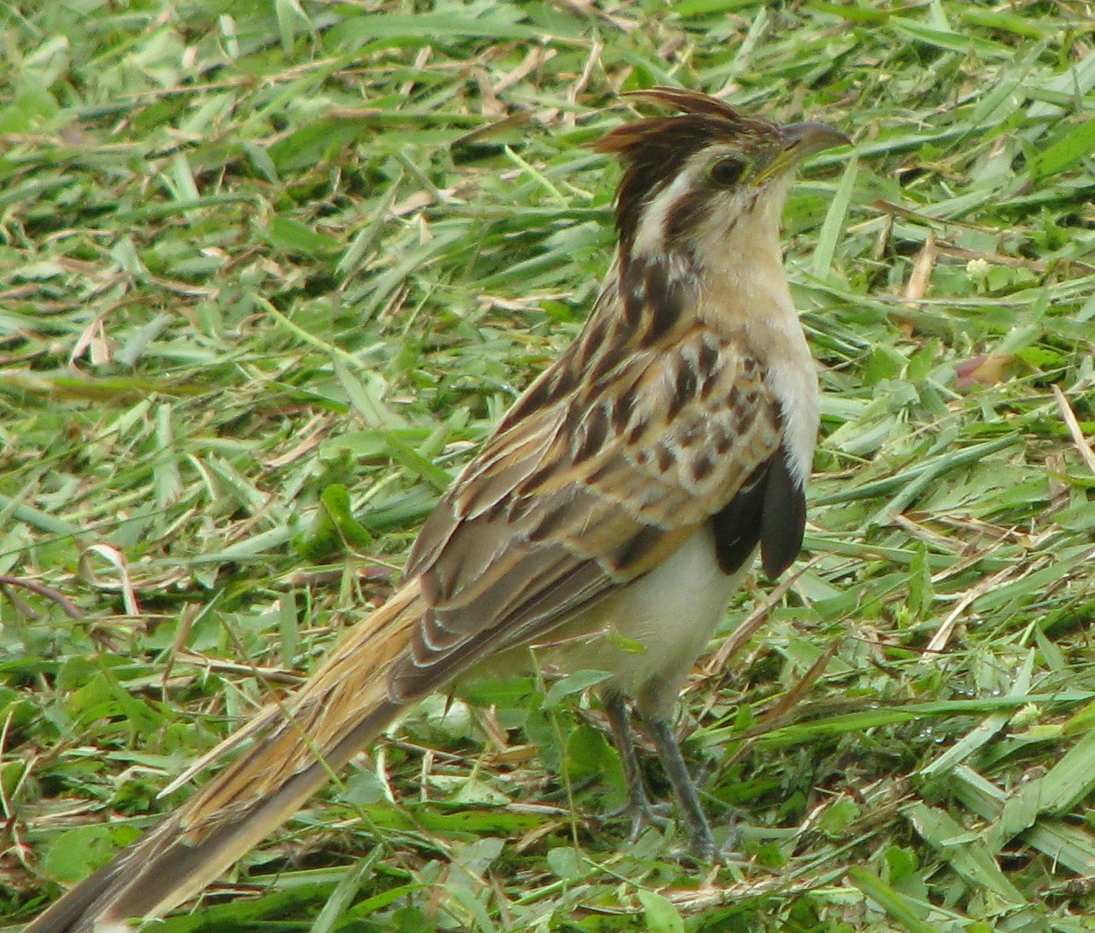 My wife volunteers at the small library being established just below the Monument and was with friend Ree Strange Sheck, long-time CATIE worker and donor (http://www.curtsheckfoundation.org/about.html) of the library to the village of Guayabo, when a Striped cuckoo (Tapera naevia) paid a call. This is another supposedly common bird of deforested areas that I have never seen. My wife wants credit for this one and is gleeful to have finally seen a bird that I haven’t, but Ree was the person who got this great photo.