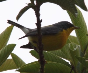 Although this is the slow time of the year for warblers, since most of them are migrants from the north, it is still relatively easy to find the Tropical parula (Parula pitiayumi), probably the commonest resident warbler hereabouts. The dark blue back and yellow front always make me think of some of the more common euphonias, but the yellow is definitely darker, tending a little to orange perhaps. The illustrations in several field guides show a prominent white wing bar but none of the birds around here show any more than a slight trace of white on the wing.