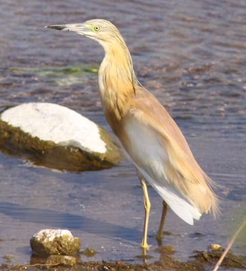 The last two species from the Camargue are the Purple heron (Ardea purpurea) and the Squacco heron (Ardeola ralloides). Each is fairly easy to identify. The former looks perhaps like a miniature Great blue heron, though it is still a fair-sized bird at 31 in. The Squacco heron is a little smaller than the Cattle egret but seems mostly tawny-coloured except in flight.