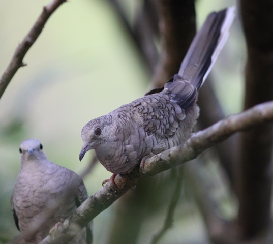 Well, it’s not a bird to put the cognoscenti into raptures, but the Inca dove (Columbina inca) sitting in my driveway yesterday was my first sighting here in San Antonio in the six years that I’ve lived here. I saw only a single bird, but here’s a nice shot of a pair taken, I believe, in Guanacaste.