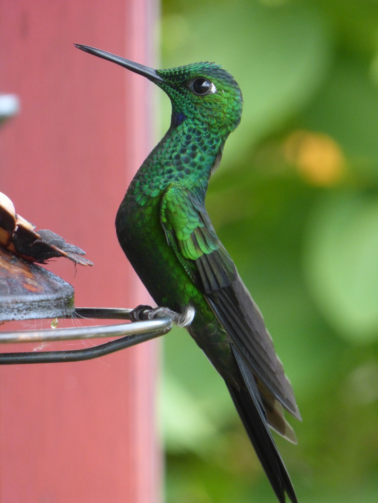 However, she regularly receives other species, and I was lucky yesterday to be on hand for a very close-up look at the Green-crowned brilliant.
