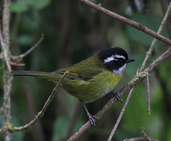 The road surface seems much improved on the lower sections, and a brief stop at the first wooded area yielded a Hairy woodpecker (Picoides villosus), drumming rapidly and loudly, and some nice looks at a Collared redstart (Myioborus torquatus). This beautiful resident warbler has appeared down at San Antonio, whereas a similar species, often found in its company, the Slate-throated redstart (Myioborus miniatus) has not yet shown up at home, nor did it appear on this trip.