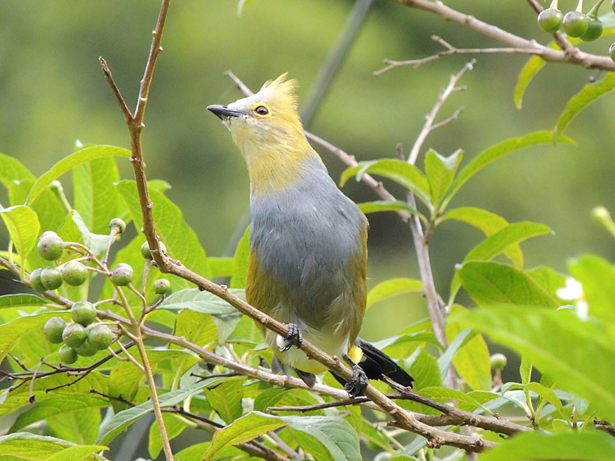 The Long-tailed Silky-flycatcher (Ptilogonys caudatus) is a really beautiful bird but unless I go up the mountain I have to wait until the end of the year to see it. In my garden I have two or three trees that attract this species, sometimes accompanied by Mountain Elaenias, and I notice that their fruit has appeared rather earlier this year. As soon as I see the fruit ripen, I keep watch for these highland species because that’s virtually the only time they appear here.