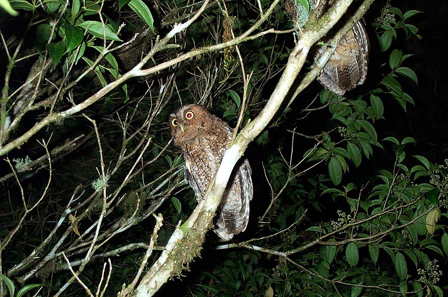 Last night, right at dusk, I inspected the damage wreaked by ICE, the national electric company, when they cut most of the remaining giant higuerón on our property. The Bare-shanked had not been heard since the fall of the first of our higuerones some three months previously. Imagine my delight, then, at finding a fluttering owl at the base of the tree. Just enough light remained for me to identify it easily, and at the same time it allowed a close approach. It was buzzed for a while by the last Rufous-tailed hummingbird, who was obviously ready to turn in for the night. The Bare-shanked, now a smallish silhouette, remained until I too returned to my evening chores.