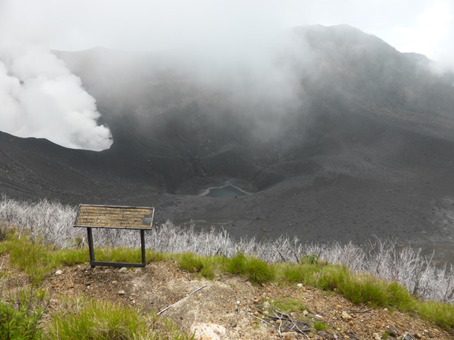 Despite the destruction of the vegetation wreaked by the recent eruptions, the view down into the Turrialba Volcano is as stunning as ever. Two small lakes in the crater now erase all trace of the area where locals used to play football in what must have been the most bizarre of surroundings, and one wall of the crater now constantly emits huge amounts of steam. However, the forest on the southern side of the volcano remains vibrant and in large part undisturbed. It makes for wonderful birding, including good chances of finding Resplendent Quetzal. This week’s hike (for the day’s species list, see end of this article) up from El Tapojo brought me my second glimpse, albeit brief, of the Buffy Tuftedcheek, (Pseudocolaptes lawrencii) plus a great look at a rare Strong-billed Woodcreeper (Xiphocolaptes promeropirhynchus ) as it whacked away at mushrooms on a rotted tree-stump. The elevation would suggest the Black-banded Woodcreeper (Dendrocolaptes picumnus), also a rare species, but the colour and size of the bill indicate that it’s a Strong-billed. I could not clearly see the belly for the absence of barring. The only photograph we were able to take shows the huge bill and the bright rufous rump. The bird brought shouts of admiration from my German friends, Jörg and Waltraut, whom I thank for their photographs on this trip. The Tuftedcheek disappeared into epiphytes just behind the woodcreeper to the right.