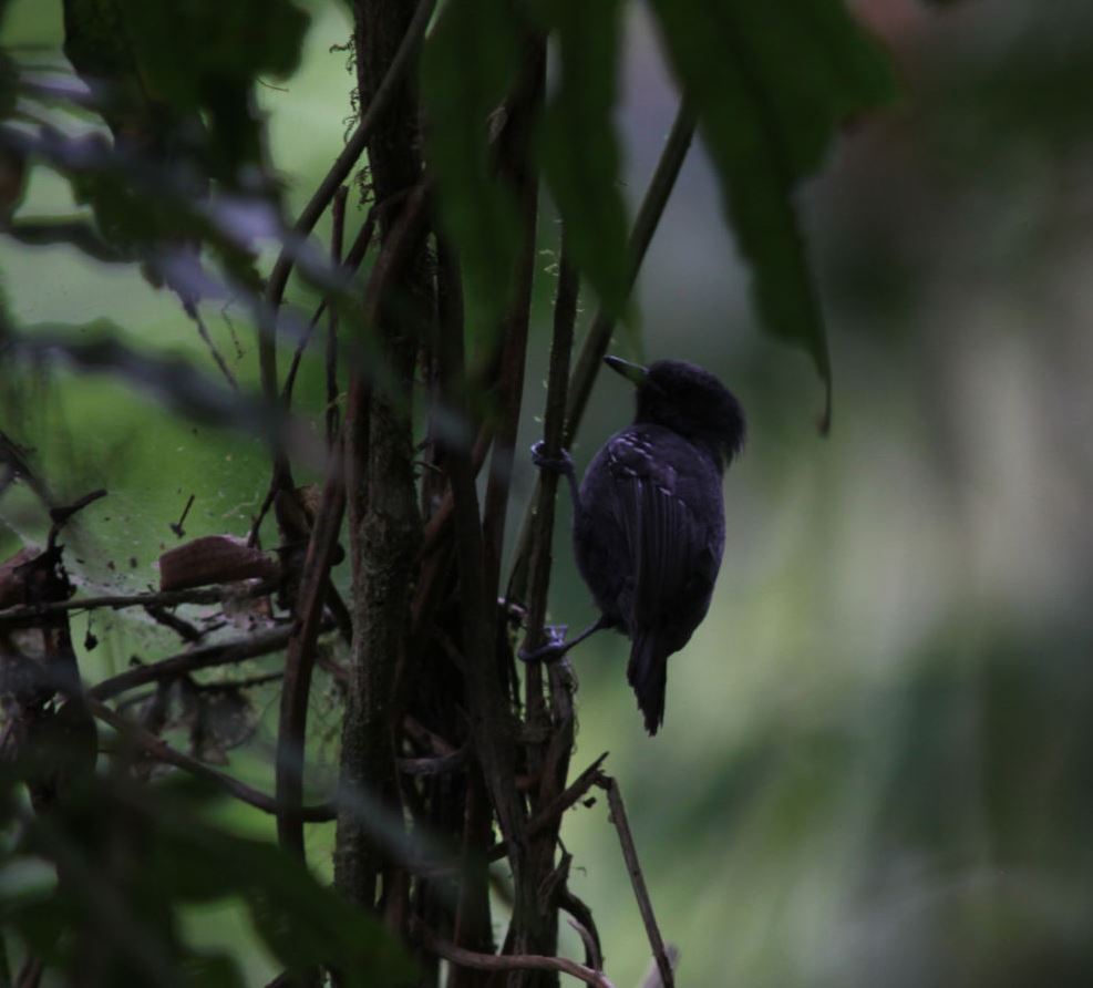 Here’s a pic by friend Karel Straatman, taken here in Costa Rica, that gives an idea of the problem. Karel was told by an accompanying guide or birder that it was either a Dusky Antbird or a Slaty Antwren. No one has been able to make a certain identification of the bird in this photograph:
