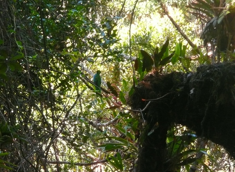 What a glorious experience! Two full days near the top of the Turrialba Volcano with nary a drop of rain! However, I must again curse my wimpy camera that could not appropriately document the beauty of the environment and its birds. Witness for example the only shot I could get of one of the four Resplendent Quetzals (Pharomacrus mocinno) that patiently stayed in place for more than 30 minutes.