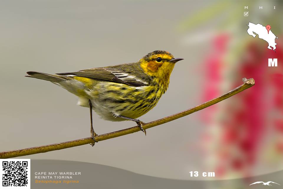 I have been checking the churchyard daily for the arrival of the Cape May Warbler (Dendroica tigrina). This rare migrant has appeared with some regularity both here at the house and, in particular, in the San Antonio churchyard opposite. So far, in past years only blurry photographs were taken, and never of a male, so I’m very grateful that enthusiastic young birders and photographers arrived a few days later to document this latest arrival.