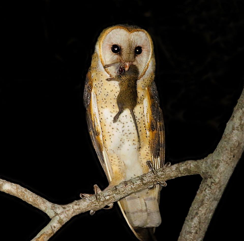 Arnoldo García reports that this Barn Owl at Guardia de Liberia first ate the head of the rat and then swallowed the rest whole. Arnoldo Garcia nos informa que esta lechuza se comió primero la cabeza de esta rata y luego se tragó entero el resto. ¡Gracias, Arnoldo, por el uso de esta tan estupenda foto!