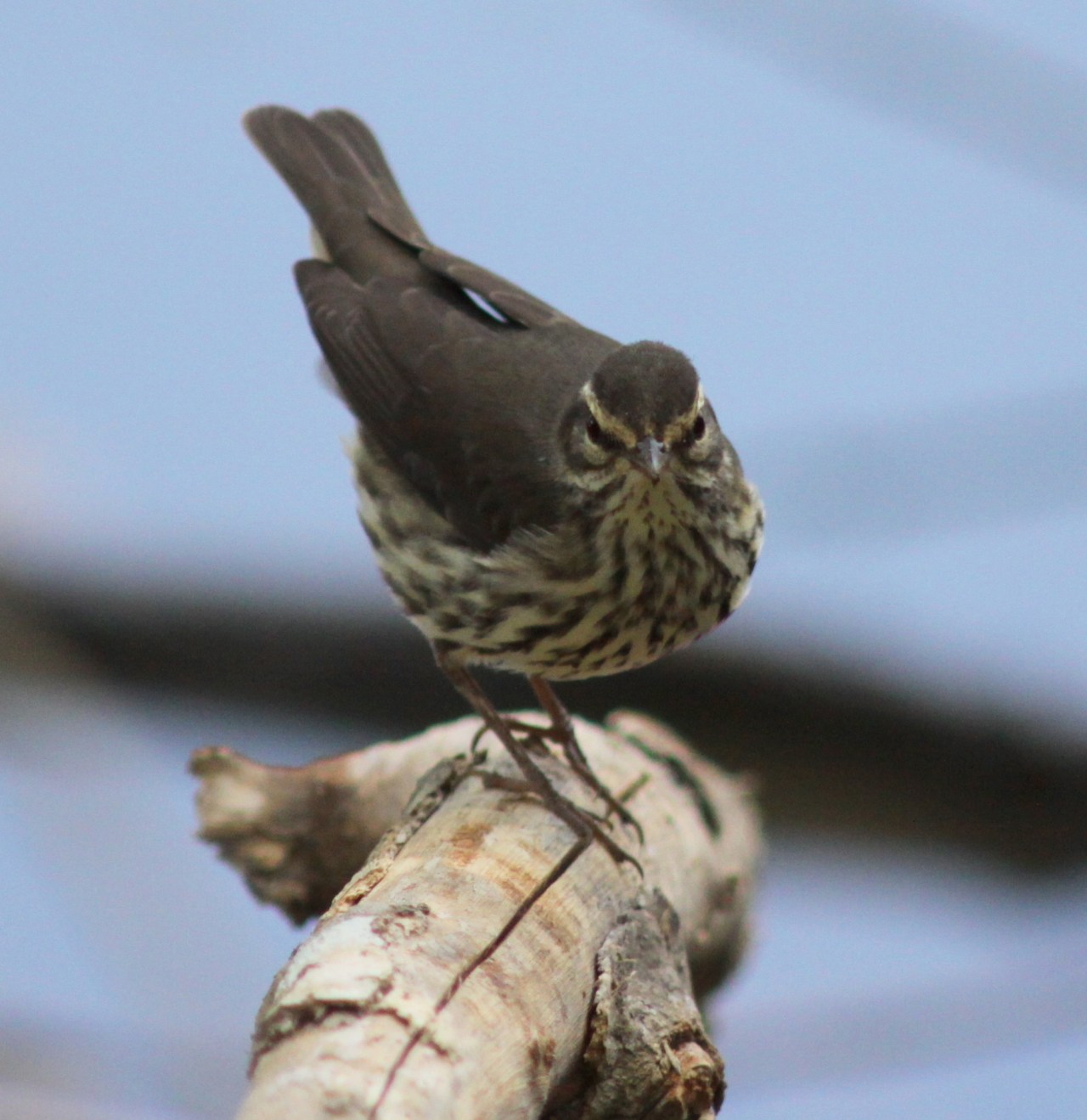 The Northern Waterthrush, with speckled throat and slim eye-stripe. / La Reinita Acuática Norteña, con garganta moteada y línea ocular delgadita.
