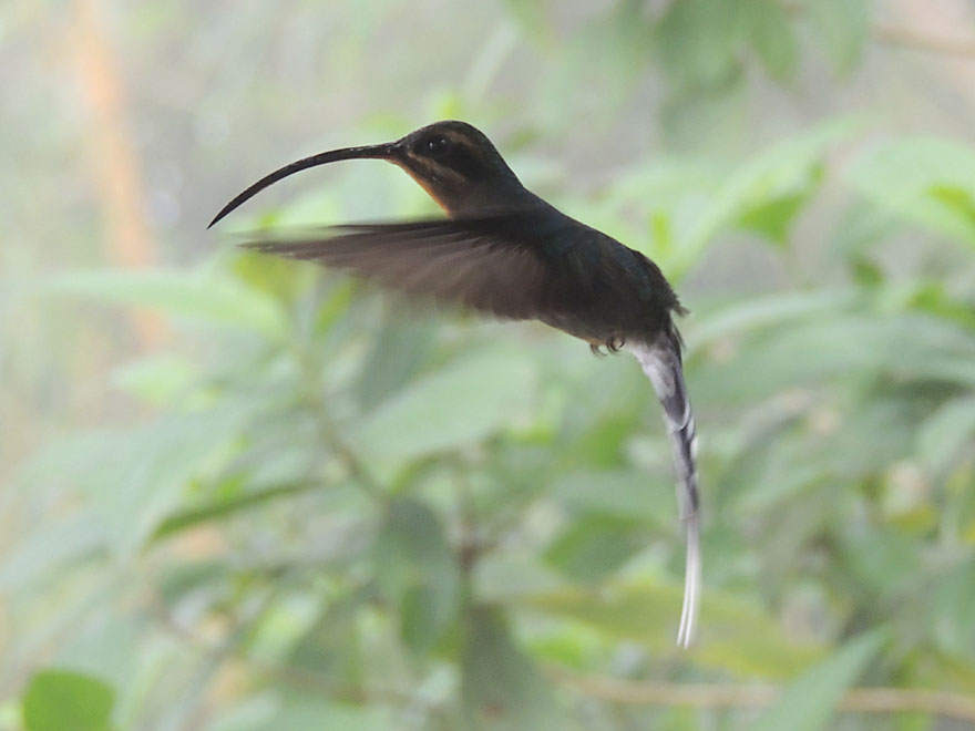The Fasciated Tiger-Herons have not been seen there for a while, but the little patch of woodland here is a quiet delight very close to home, and several species there rarely reach our garden near the San Antonio church, just five minutes’ walk away. This week the Golden-crowned Warblers were there as usual, together with White-breasted Wood-Wren, Bay Wren, Common Chlorospingus and Spotted Barbtail. The latter species, a darkly spotted funarid that lives in thick vegetation, usually fairly low down, is not easily found in our area. Among hummingbirds, the commonest species here are hermits, and this week’s second visit brought my first view in a while of a Green Hermit (Phaethornis guy). Female pictured below is by courtesy of Richard Garrigues.
