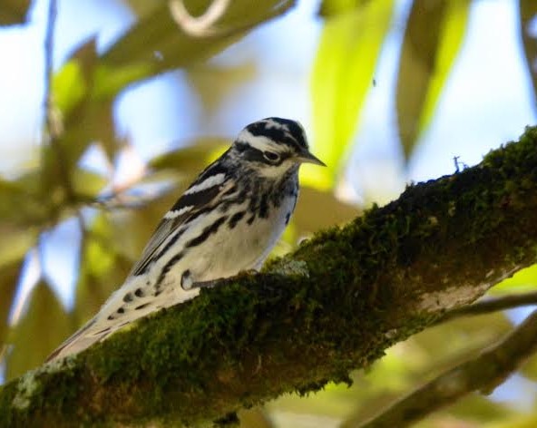 I can’t resist adding a final warbler photograph of Larry’s from the Aquiares excursion, this time of a different species and one with which North American birders are very familiar, the Black-and-white Warbler (Mniotilta varia):