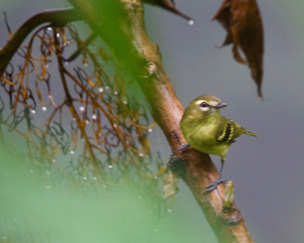 The Yellow-winged Vireo is often accompanied by another mountain endemic, the Flame-throated Warbler (Oreothlypis gutturalis). They share the same elevation range from around 1500-1600 m to timberline.