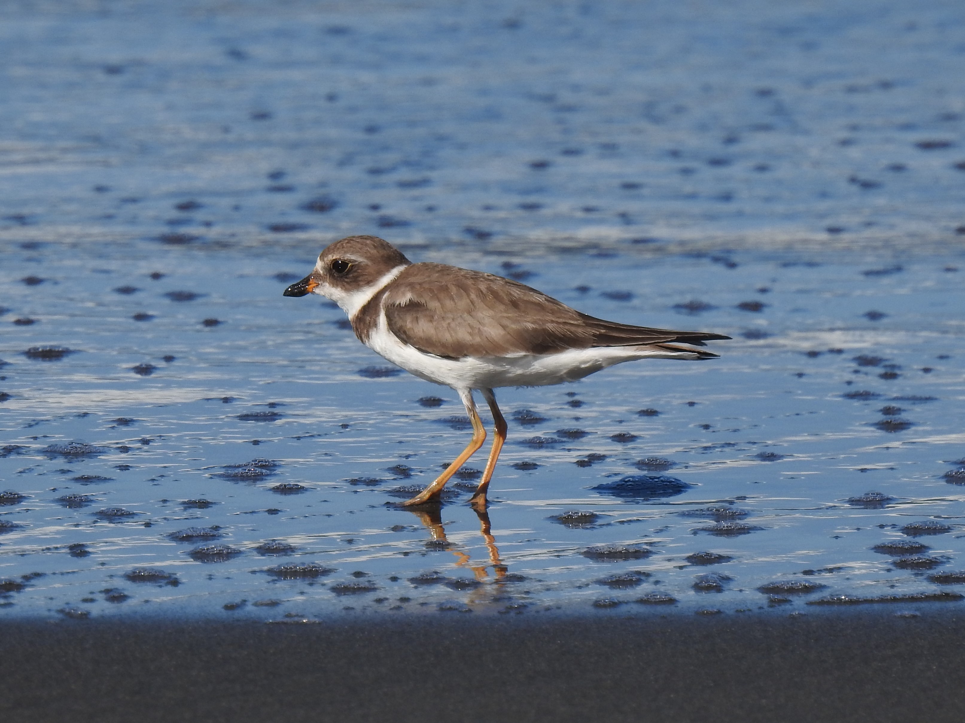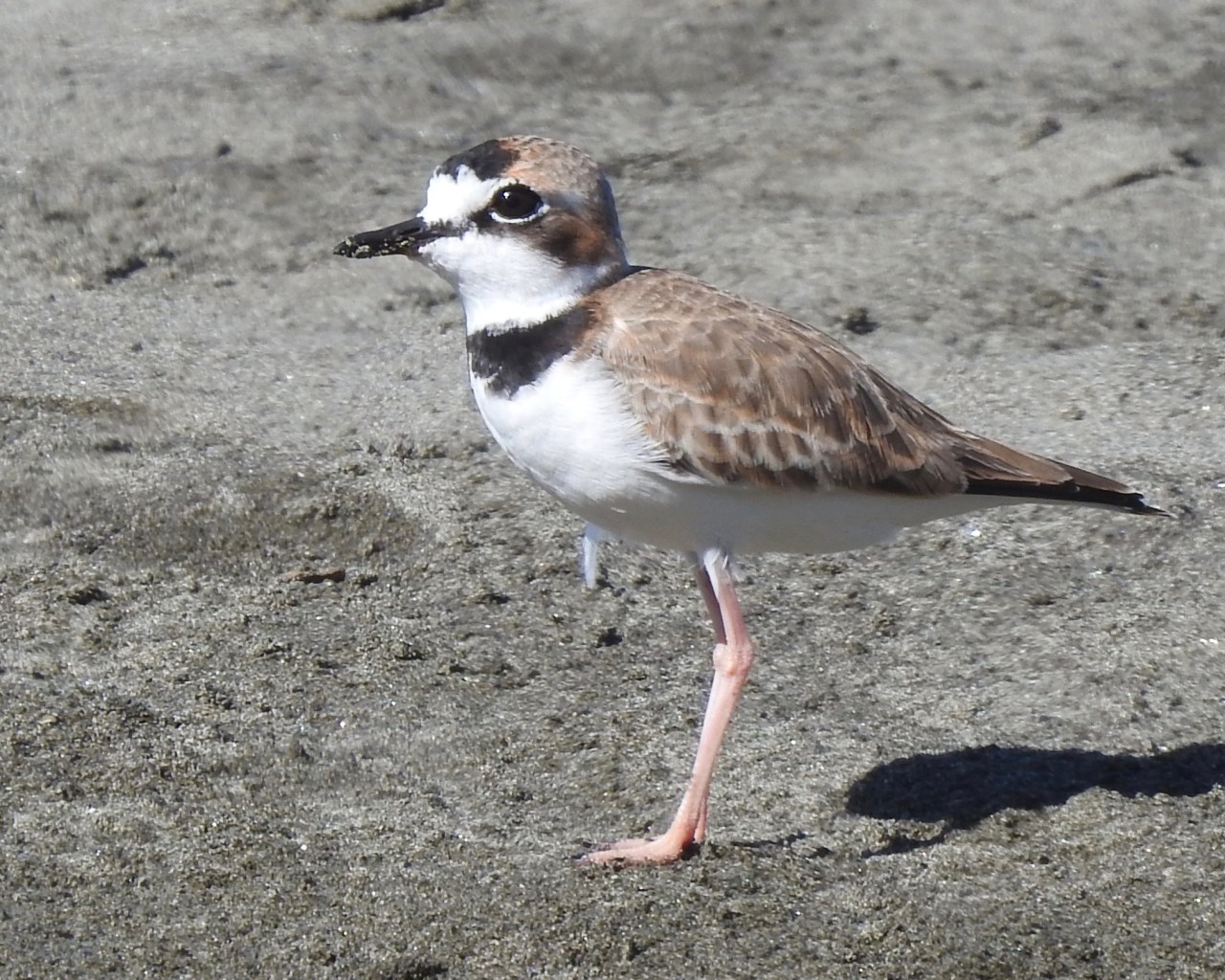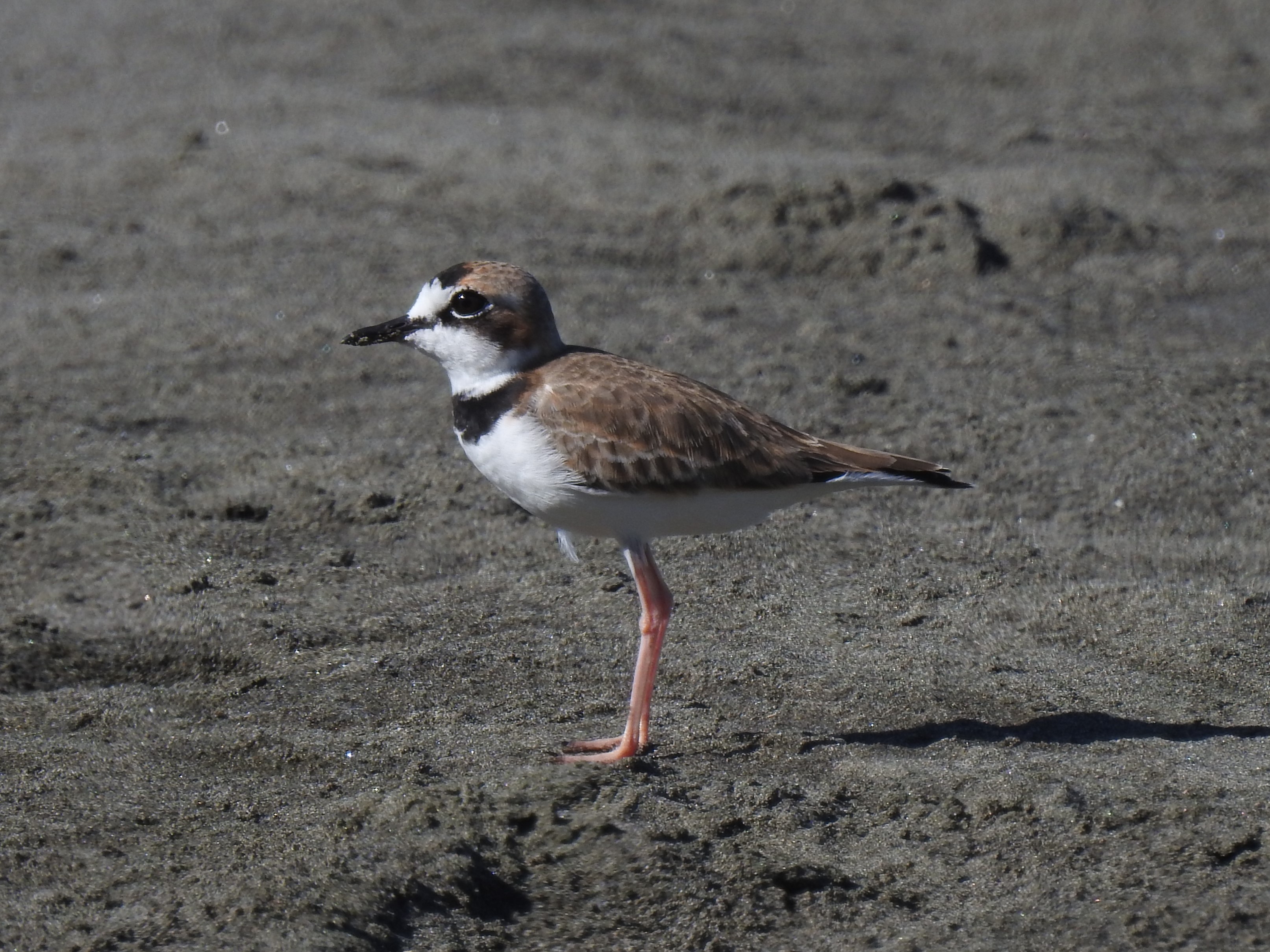 The least common of the plovers and sandpipers scuttling along the beach was the Collared Plover (Charadrius collaris). This is a tropical species, unlike most of the other shorebirds here, which are migrants from the north. It was the first bird we found when we arrived at Casa Doña Julia, where we were well attended by owner-manager Gil. The house is right on the beach. The pink legs of the Collared Plover are noticeable at close quarters and allowed us to easily separate the pair we found from the Semipalmated Plover (Charadrius semipalmatus). The latter is a bird well-known to North American birders but is a passage migrant and, uncommonly, a winter resident here on the Caribbean.