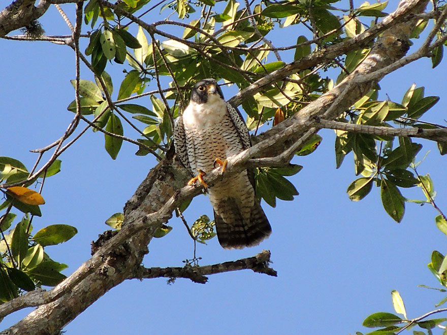 First in line is undoubtedly the Laughing Falcon. This beautifully attired snake-hunter is the species seen (and heard!!) most regularly. Its insistent and repeated call often descends into the cackling laugh that gives it its name. It is very active in the early morning and just before and well into dusk.