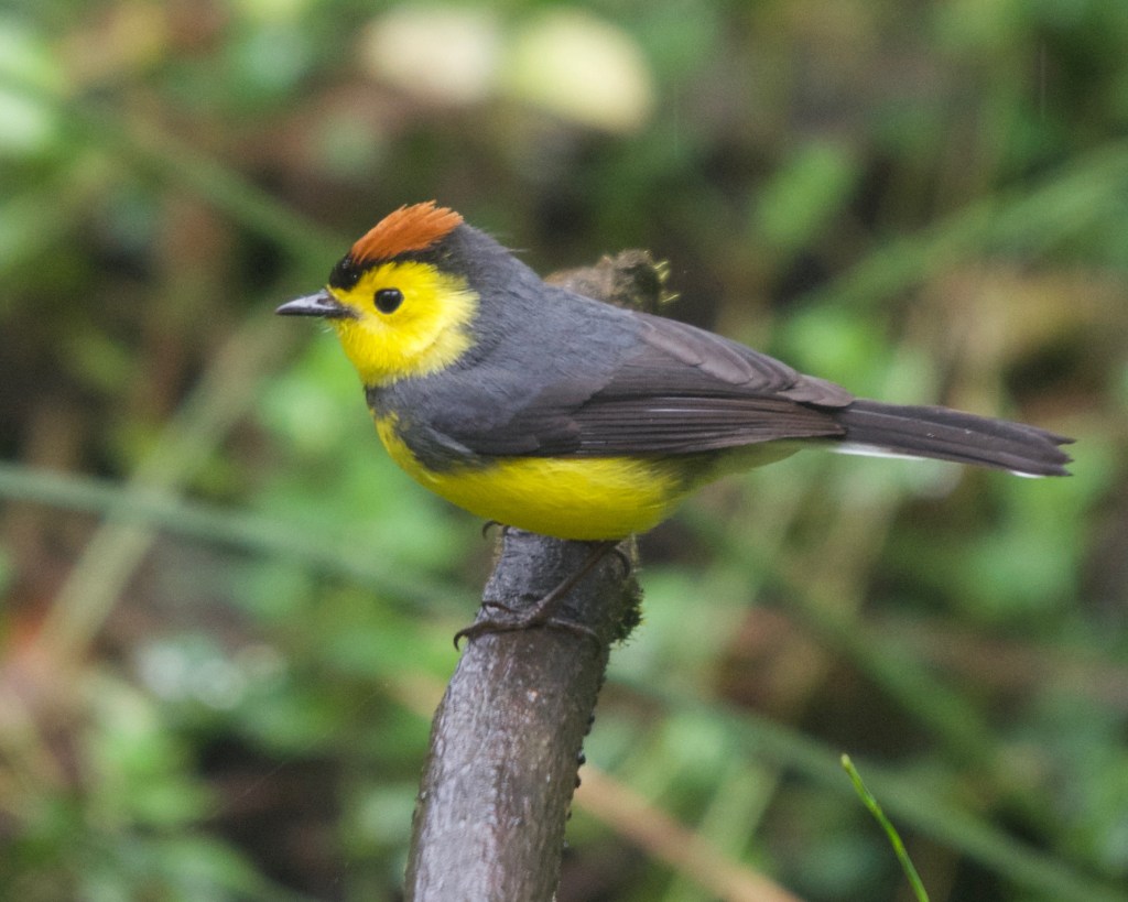 As you climb to the higher elevations on the Turrialba Volcano slope you will find that starting from around 1500 m the Collared Redstart (Myioborus torquatus) gradually replaces the Slate-throated Redstart (Myioborus miniatus) of the middle elevations. Both of these birds are common residents here, but torquatus has a very limited range and is confined to the mountains of only Costa Rica and western Panama.