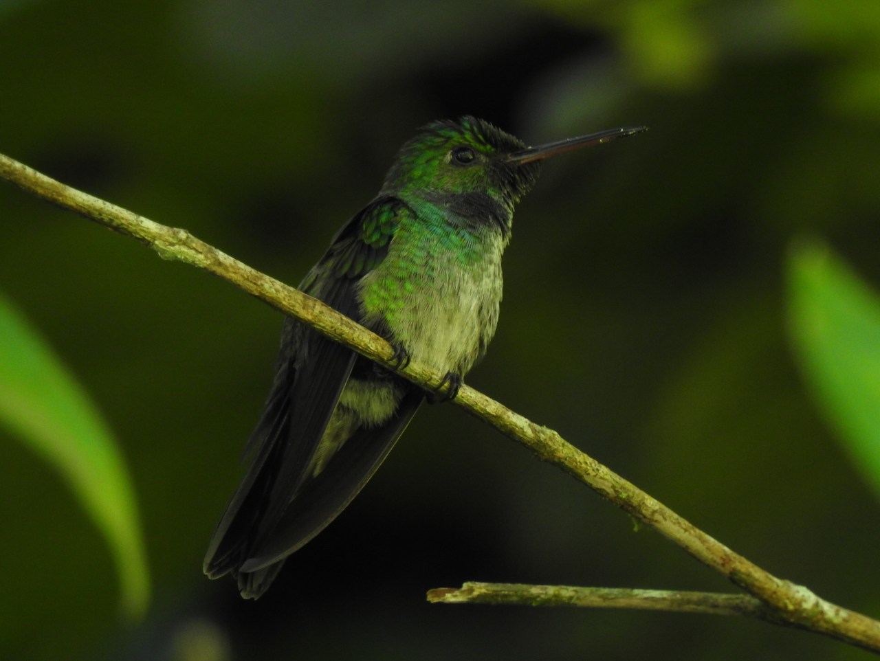 My own excursion with John this week brought relatively few sightings of species. The day was extremely hot and humid and whole families, such as tanagers, antbirds, euphonias and warblers, seemed to be completely absent. At a pond at around 580 m, however, we found at least one Blue-chested Hummingbird: