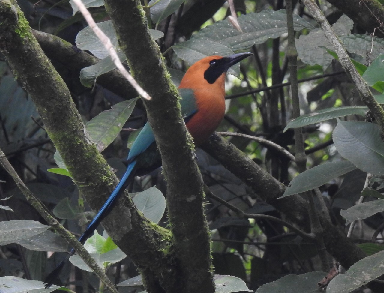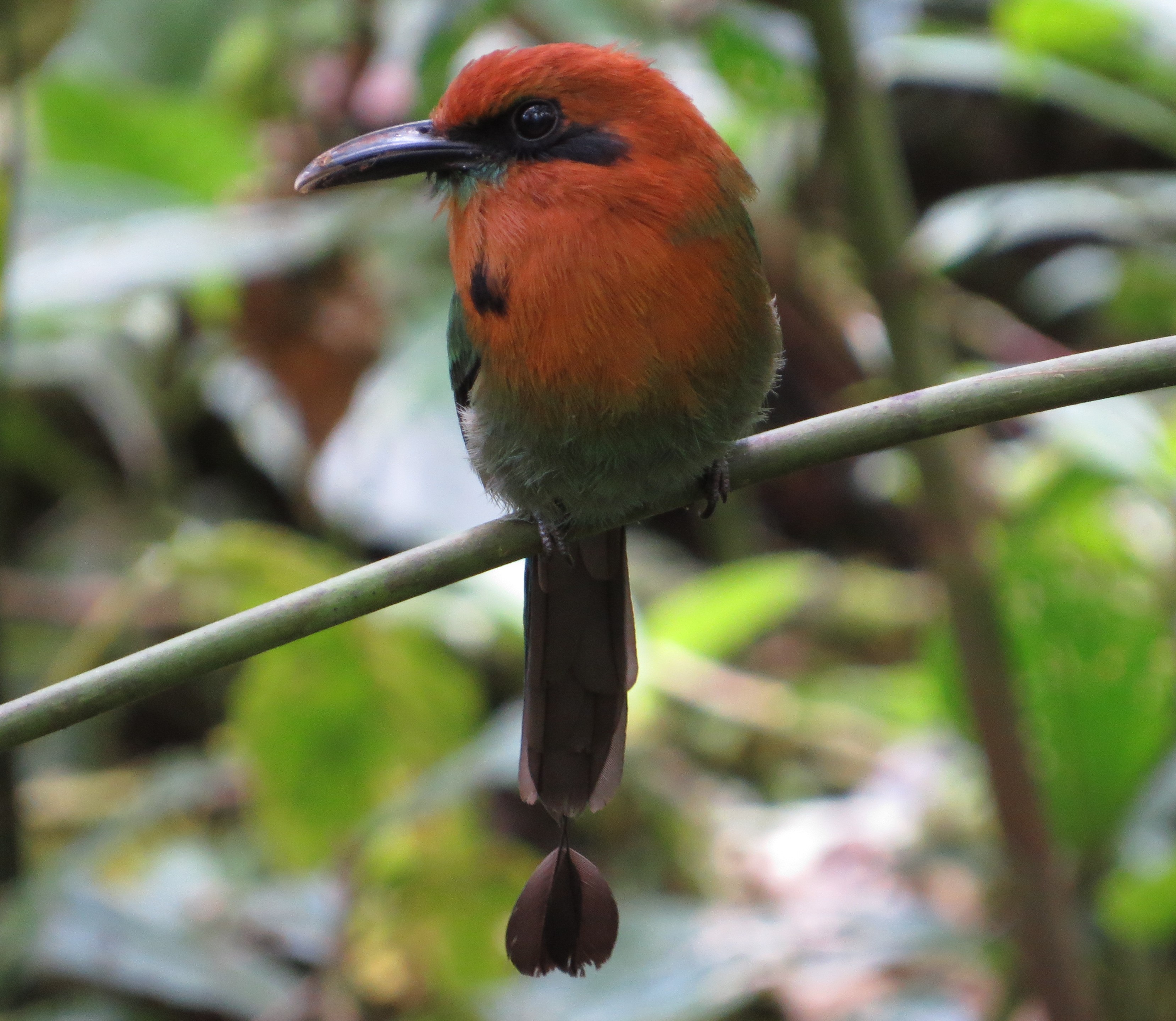 As regards identification, only one other species looks at all like the Rufous Motmot: the Broad-billed Motmot (Electron platyrhynchum). This is pretty much a smaller version but with the rufous of the breast not extending to the underparts. It shares the same range within Costa Rica, i.e. the Caribbean lowlands, and I reported it recently twice from the Refugio Silvestre La Marta.