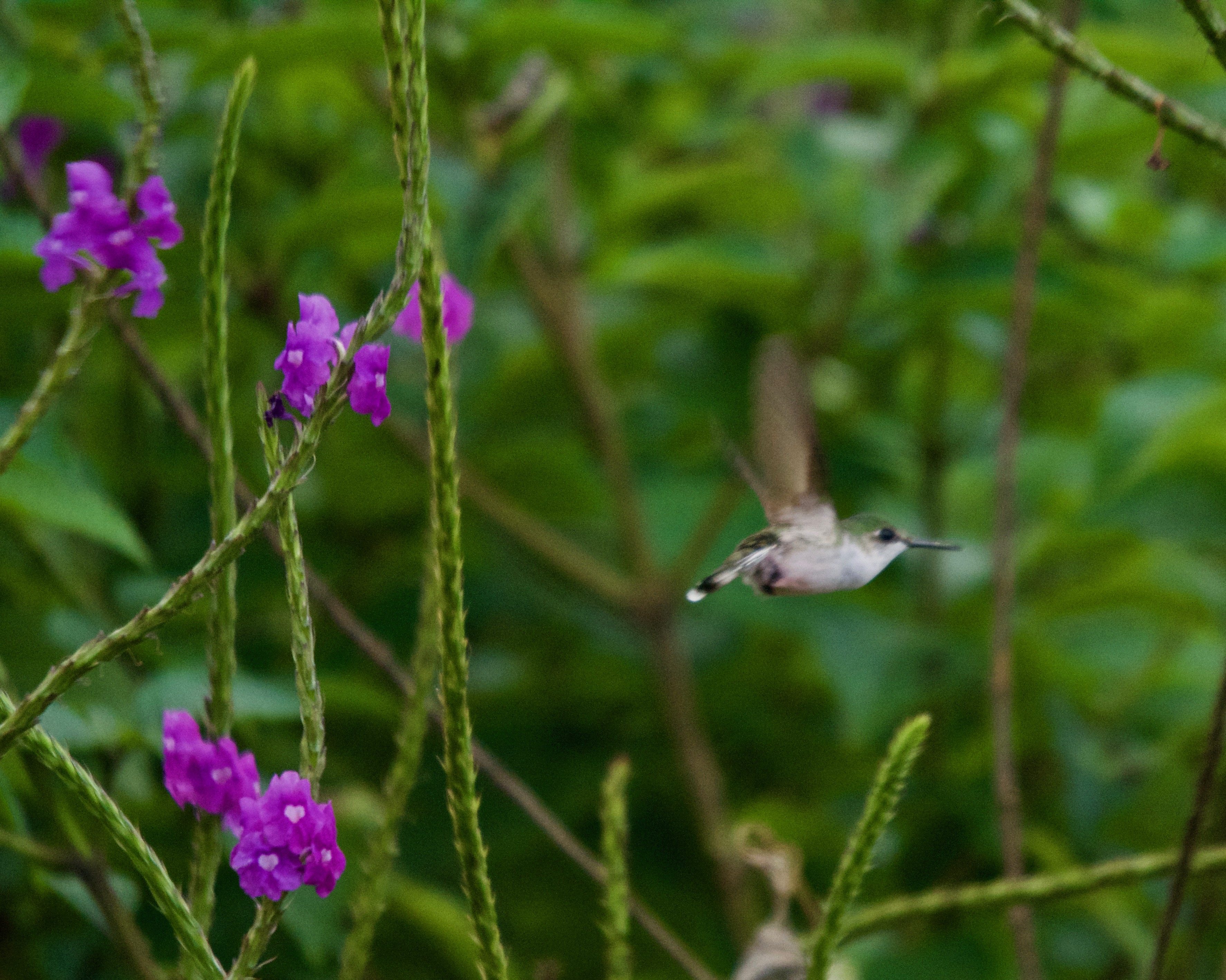 Hummingbirds are plentiful at Las Brisas and it’s virtually impossible to miss the Snowcap (Microchera albocoronata). This little beauty is much sought-after by visiting birders. It ranges from southern Honduras through Costa Rica to western Panama. The male is impossible to misidentify, though the female may pose problems:
