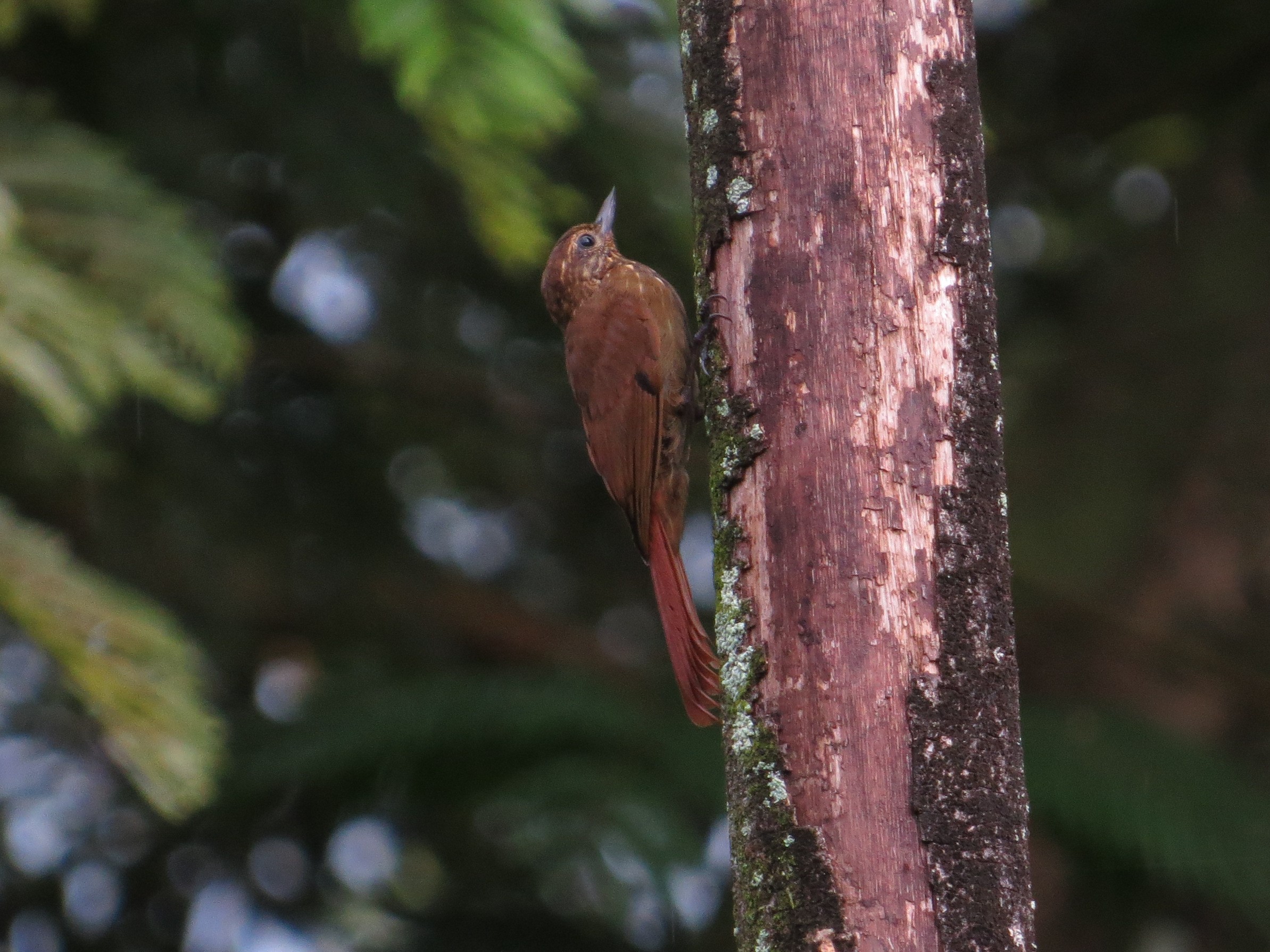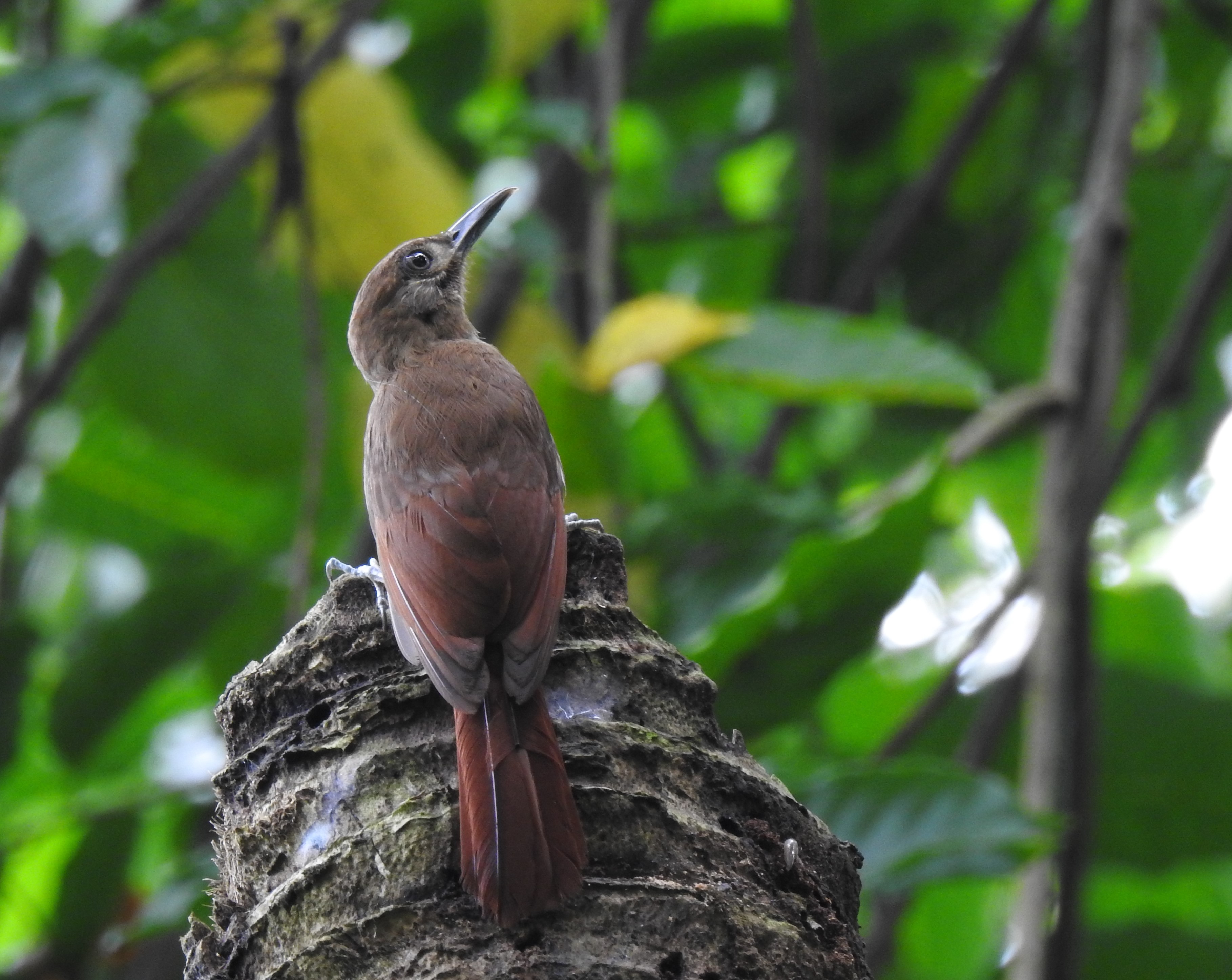 Woodcreepers (16 species in Costa Rica) are notoriously difficult to identify but the Plain-brown Woodcreeper (Dendrocincla fuliginosa), an uncommon forest species of the Caribbean lowlands, is conspicuous in showing no streaking or spotting at all.