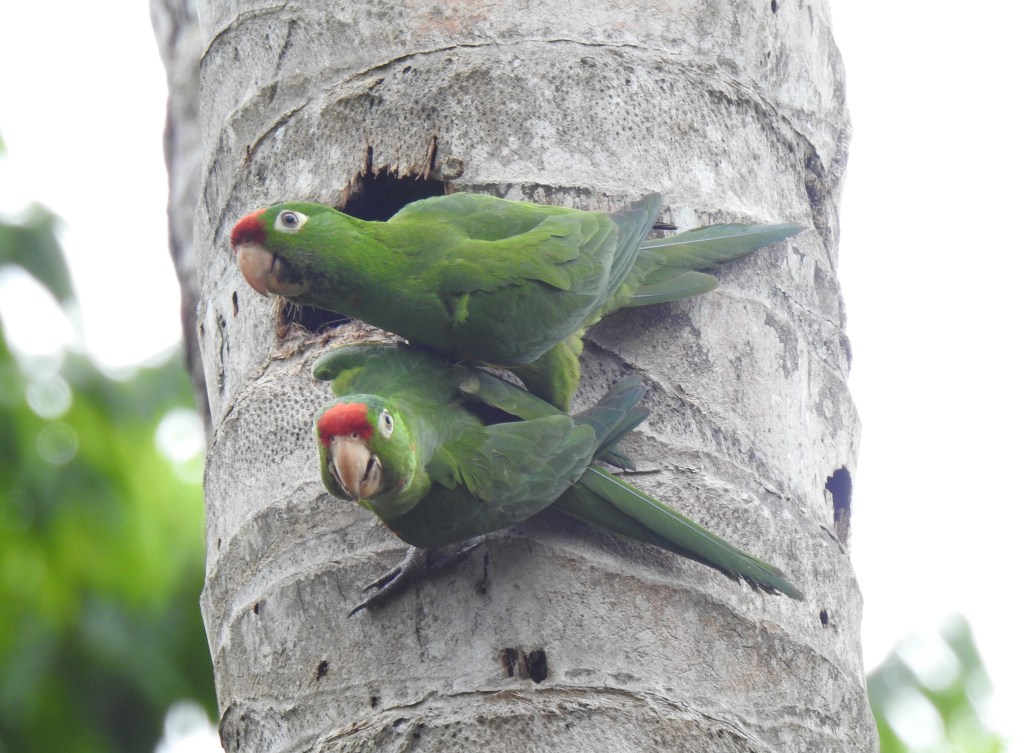 Like the White-crowned Parrot, this parakeet nests in cavities. However, it is a very social species and can be found roosting communally in many Costa Rican towns and cities. Nesting birds are easily found behind the CATIE buildings near Turrialba but flocks in flight can be seen and heard almost everywhere in our region, from higher elevations on the Turrialba Volcano right down to sea level on both coasts: