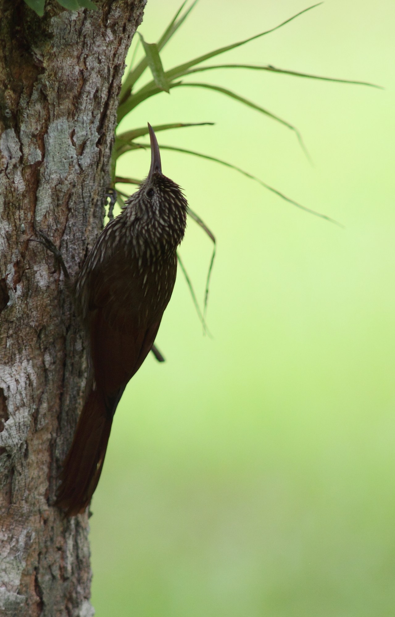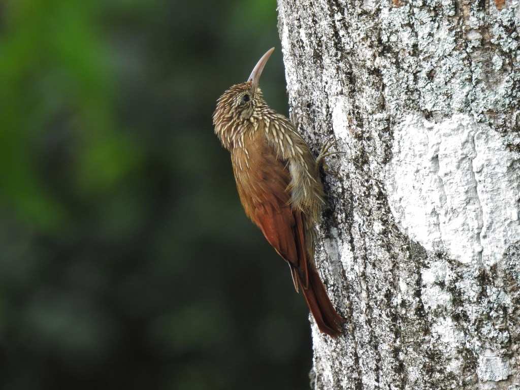 This young bird doubtless hatched in John’s garden. Woodcreepers are hole nesters and I have found several Streak-headed nests both in my garden and near the house. If you can get a close-up view, it’s best to note the streaks (not spots) on the head to avoid possible confusion with the very similar Spot-crowned Woodcreeper (Lepidocolaptes affinis), even though the latter is rarely found below around 1500 m above sea level.