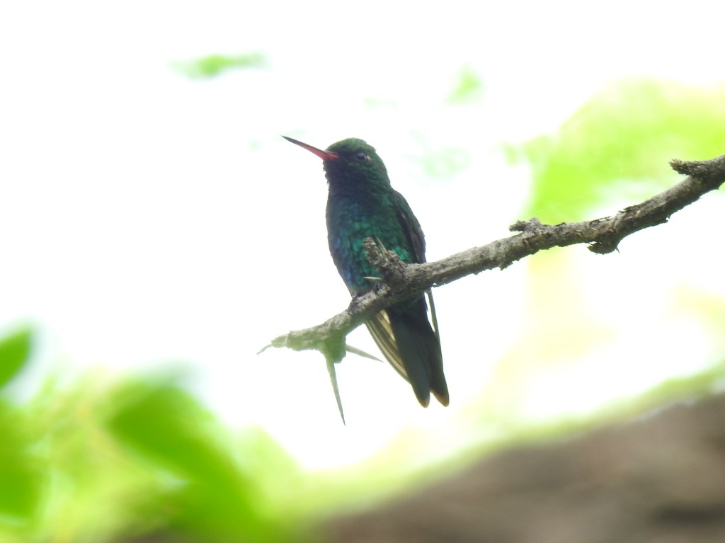 It’s a good idea to note the colour of the bill because a closely related species, Canivet’s Emerald (Chlorostilbon canivetii), is virtually identical. Fortunately, any confusion can be solved because Canivet’s has an essentially red bill – especially the first half, starting from the base. Supposedly there is no range overlap, but this species has been recorded repeatedly at Ujarrás and the vicinity of Lago Cachí, a mere 25 km west of Turrialba. This is slap bang in the Garden Emerald’s normal range and well out of Canivet’s usual territory, which is mostly the northwestern parts of the country. To complicate matters, there is one very recent and accepted (so far) report of Canivet’s Emerald on the very outskirts of Turrialba from Sitio Mata – the first ever for us as far as I can tell. This report may yet be withdrawn for lack of evidence, it seems.