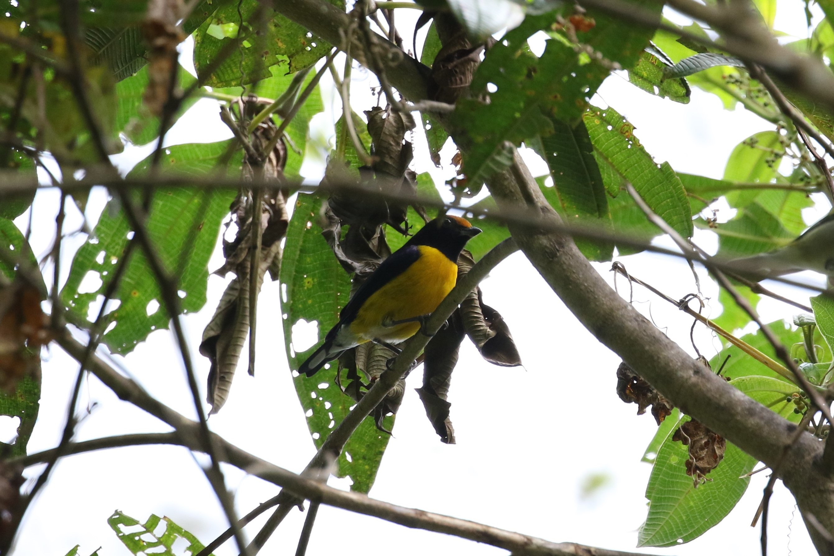The birds were inspecting a leaf cluster and were momentarily out in the open. However, we caught not much more than a few brief but exciting looks as the pair quickly retreated into adjacent thick foliage.