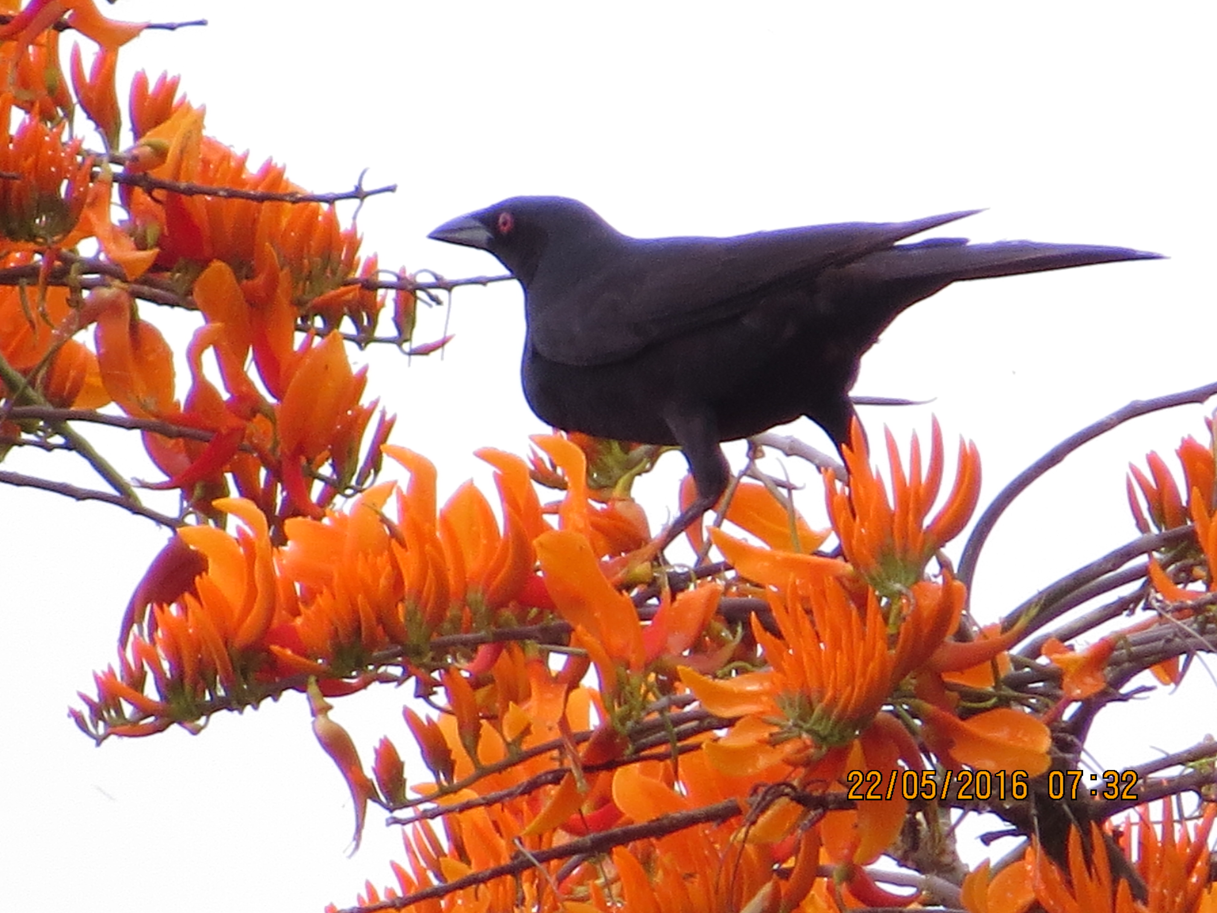 These spectacular, mostly chestnut-plumaged birds normally have a nesting site in a tall eucalyptus a few hundred yards uphill from here, but as I write this they are rapidly building near the top of one of my own eucalyptus trees, with two or three large nests already swinging precariously though safely in today’s wind and rain. Giant Cowbirds (Molothrus oryzivorus), a parasitic species with adults not much smaller than female Montezumas, are already perched close by, ready to lay their eggs at the bottom of the long nest pouches. A lone male Montezuma acts as sentinel but if he becomes distracted the cowbirds will quickly take advantage. Was it a distracted Moctezuma who allowed Cortés and his band of adventurers to take possession of Tenochtilán?