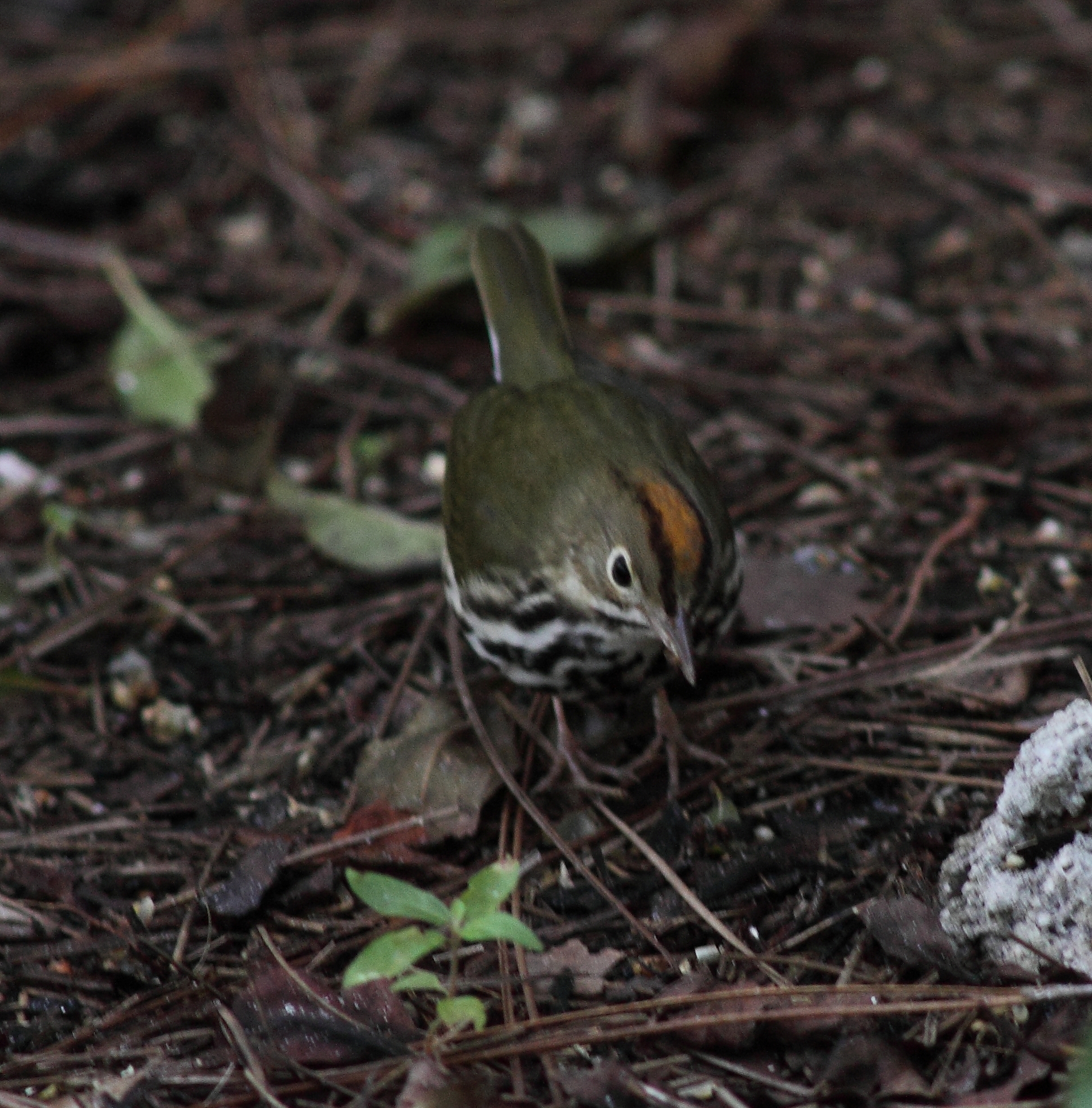The fourth warbler of considerable note, the Ovenbird, is actually a rather common migrant in Costa Rica in most years. Only very recently, however, have reports from the Turrialba area begun to exceed very low numbers. Much of the credit for this goes, I believe, to the remarkable and fairly recent increase in the number of qualified home-grown Costa Rican observers. The first two images below show the latest sighting of this ground-loving species in Aquiares. First impression is often of a small thrush, but the final image – from the United States – shows more clearly the key field marks that will definitively identify this warbler.