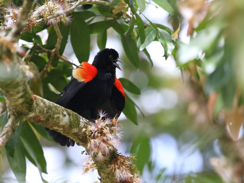 Angry male Red-winged Blackbird shows off his bi-coloured epaulettes