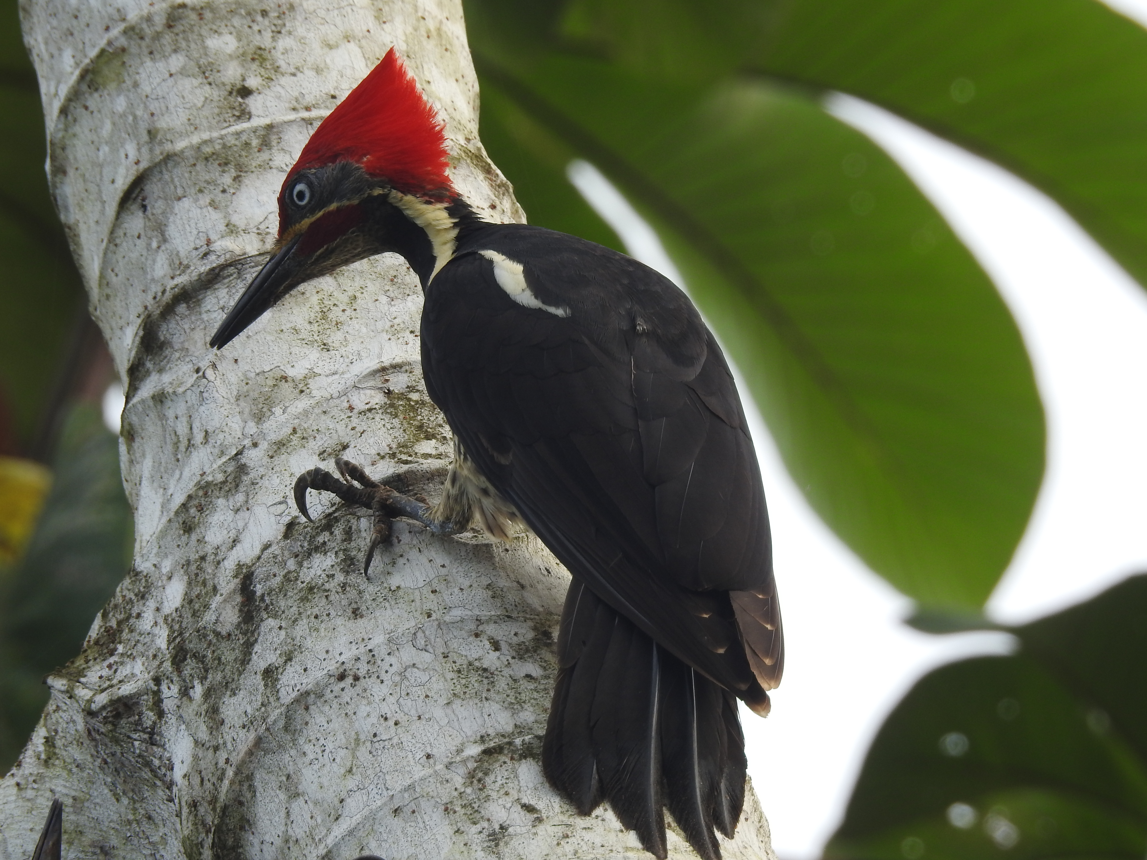 Until this week I had never seen this impressively large, red-crested woodpecker in my garden, but my wife Ches spotted one as it pounded on a dead guayabo stump near the gate. It then flew to a guarumu before heading off towards nearby Quebrada La Loca, where I once found one some 6 years ago at Villa Spoonky. (Please don’t ask me where they got that name from!) I was not able to verify the sex of our bird. This second photo is also from Angostura:
