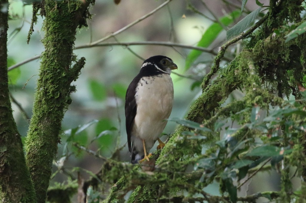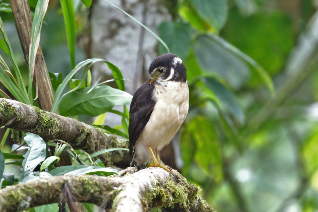 Raptor plumage is often highly variable and, while immature Barred Forest-Falcons may also have barred or even buffy underparts, our bird here is mainly white below with dark head and incomplete white ‘collar’: