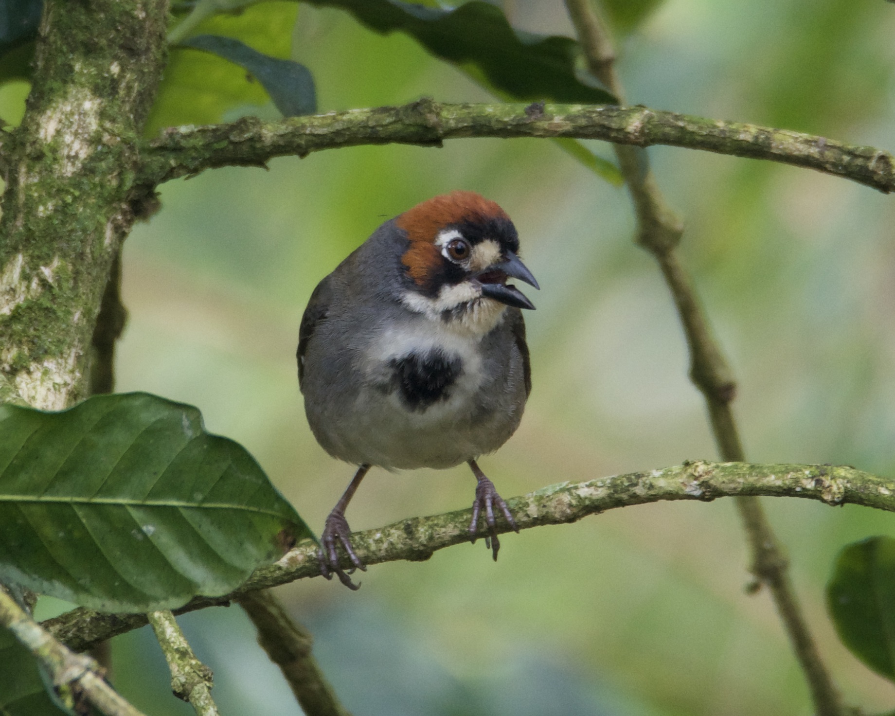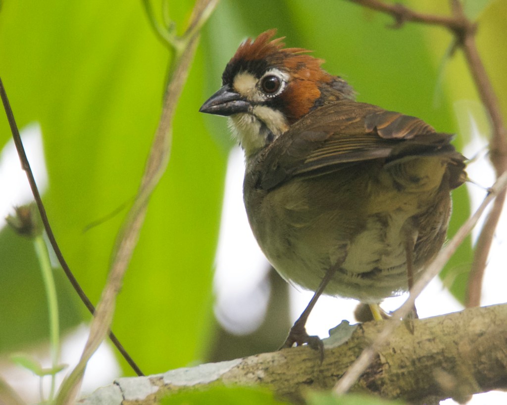 Cabanis’s Ground-Sparrow is an endemic species which is considered to be near-threatened primarily because of habitat destruction caused by urban development, but also because it’s found exclusively in Costa Rica and then only in a very restricted range. There are many reports from our local area, where it is often found in coffee fields. Those at nearby Aquiares are within an easy walk of friend Larry Waddell’s house, hence this very recent photo:
