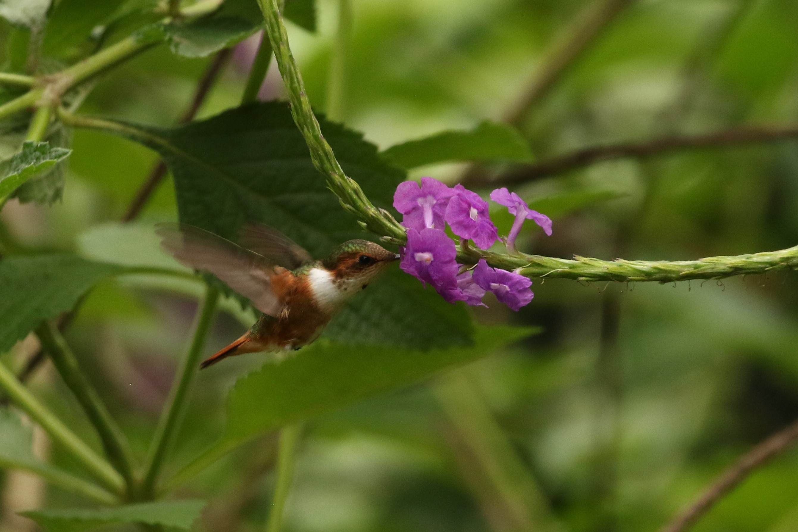 This rear view excludes the possibility of a coquette species. Below a final clear look at what has been determined to be an immature male still shows only a mere trace of the post-ocular spot seen on adult birds in most field guides: